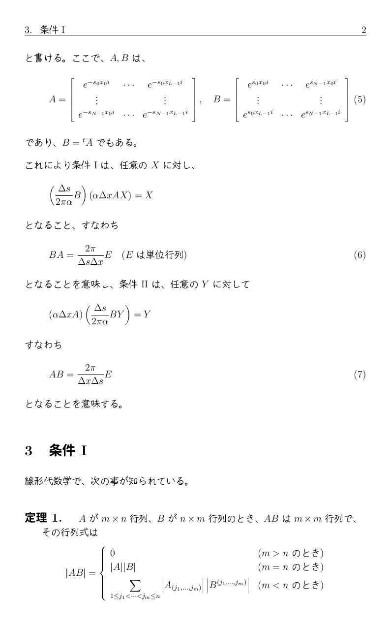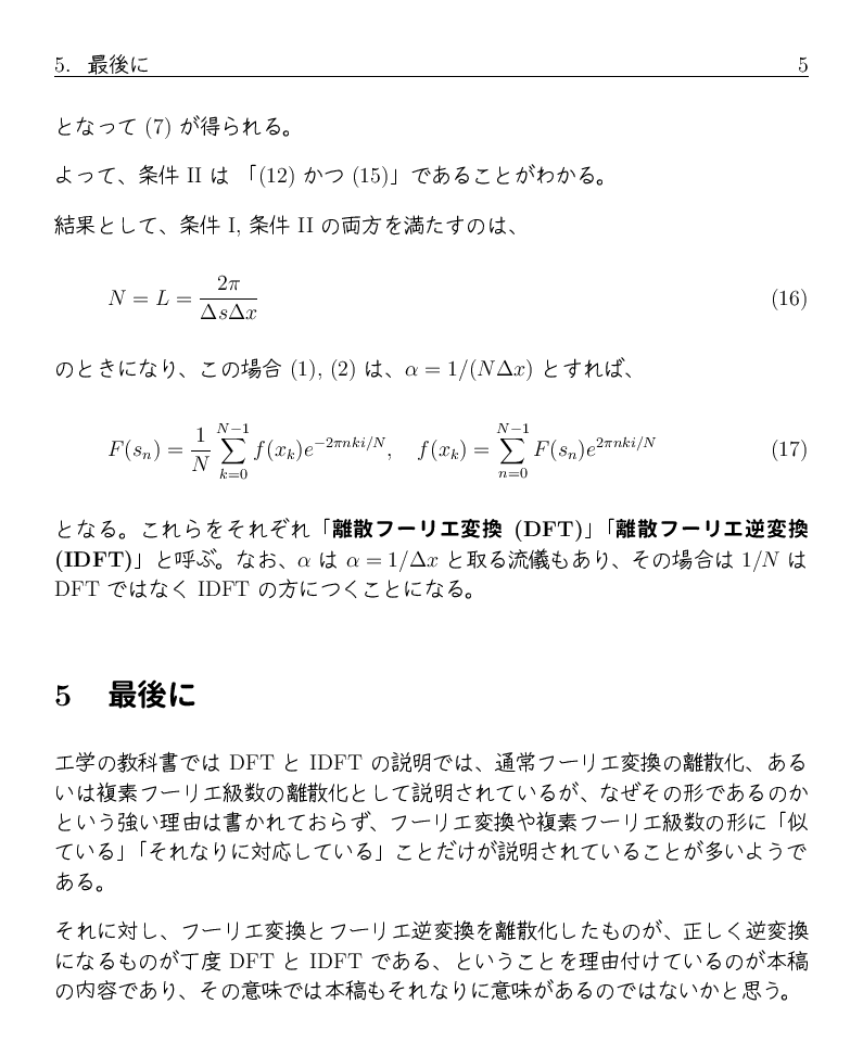 フーリエ解析の最後の講義で、 フーリエ変換とフーリエ逆変換を離散化したものに対して、 それぞれが正しく逆対応になるための条件を証明なしに紹介しましたが、 その証明をここに置きます。