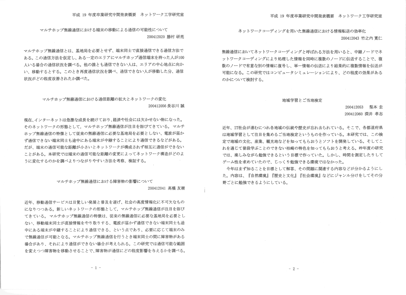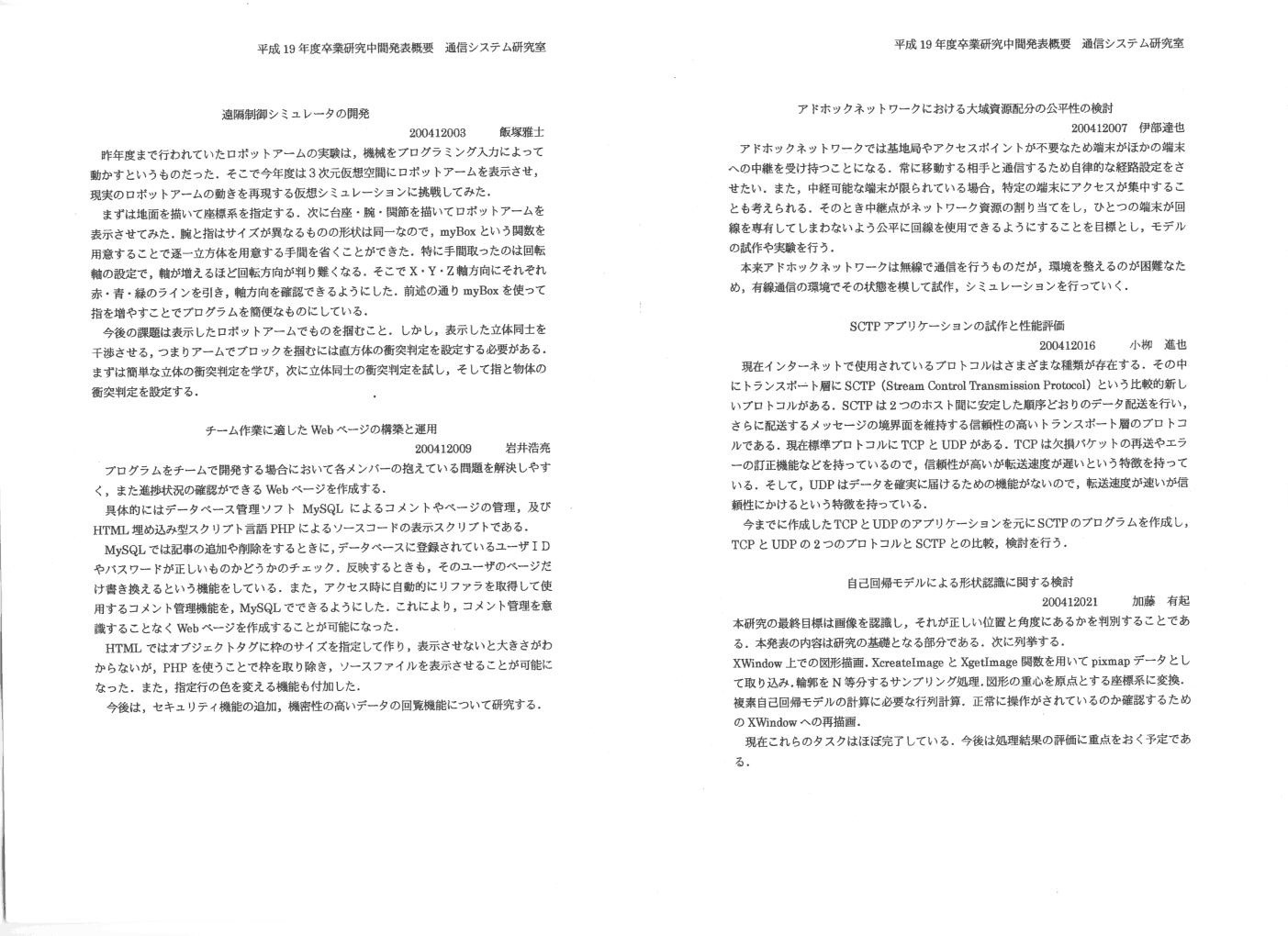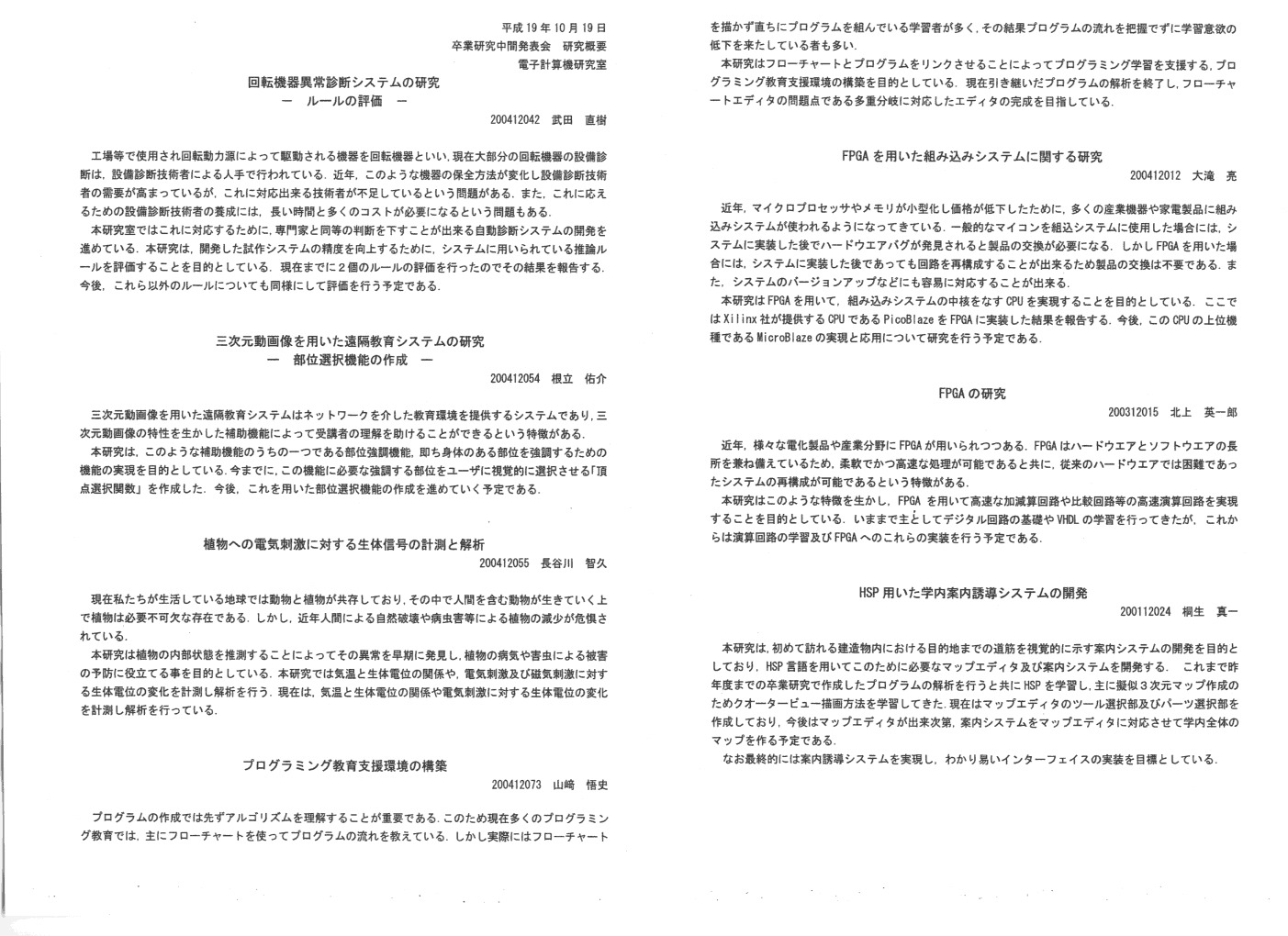 情報電子工学科 2007 年度 卒業研究中間発表会