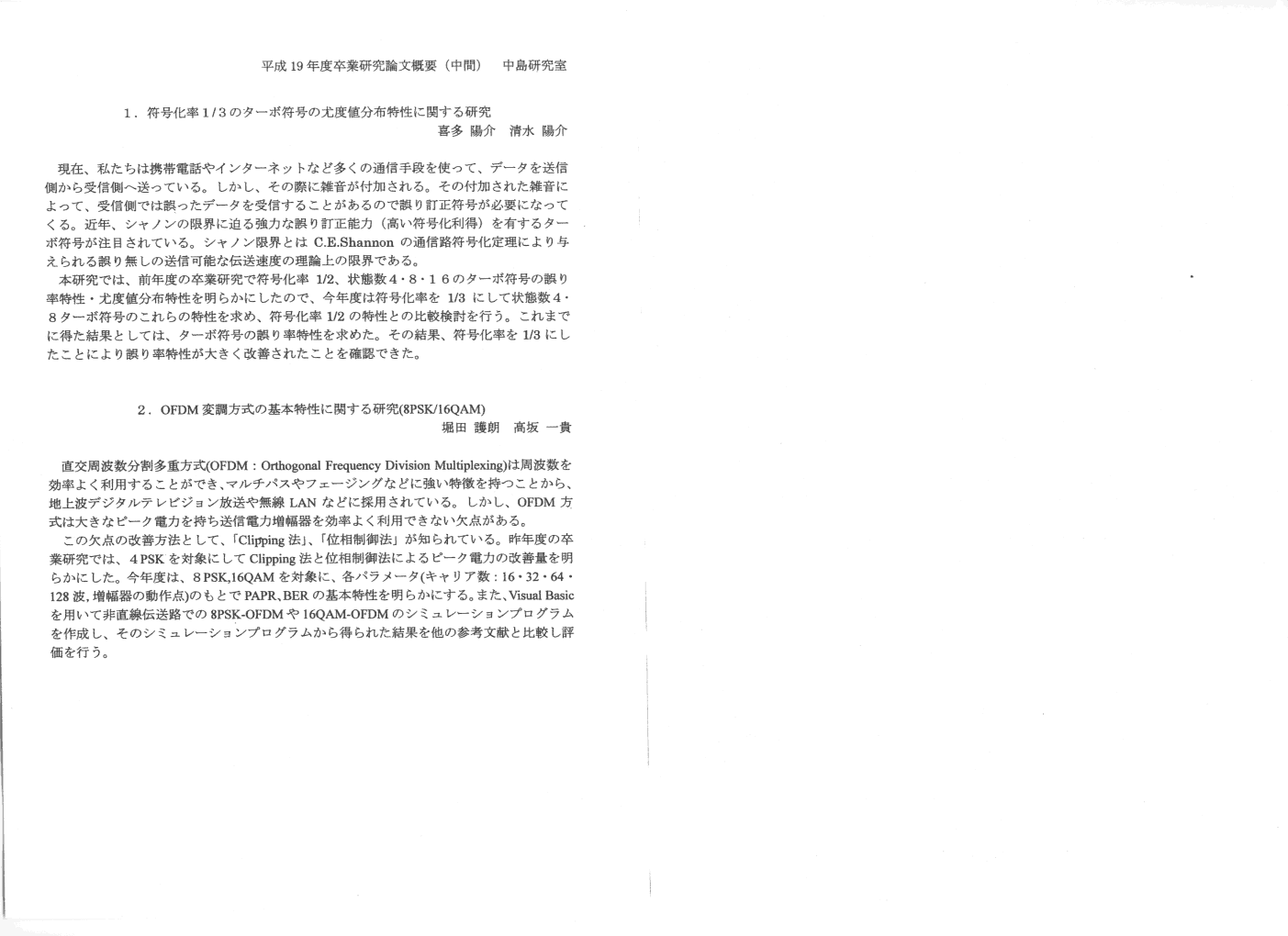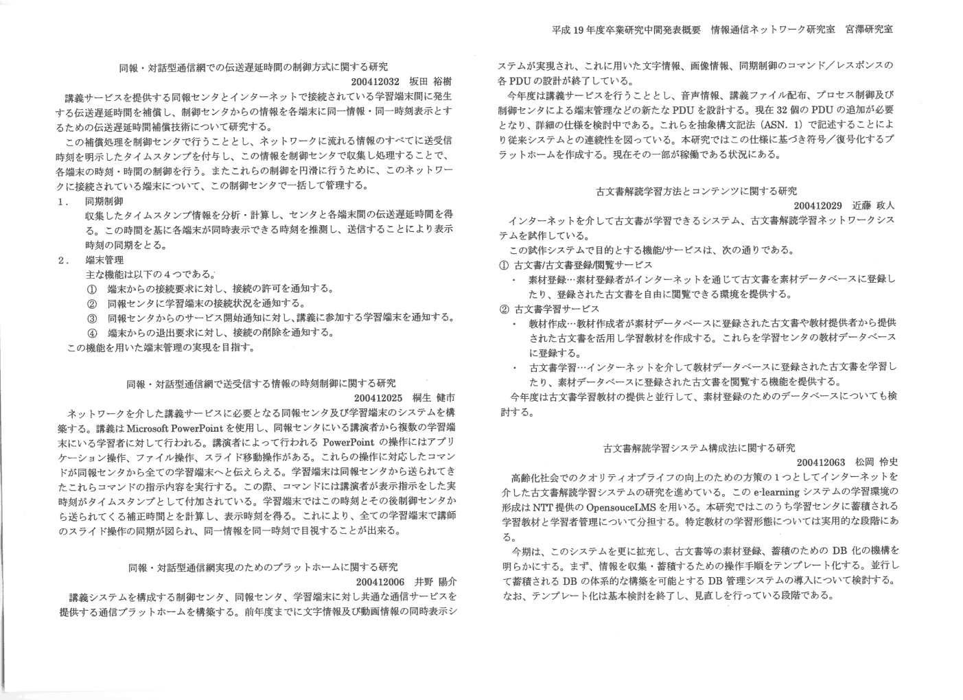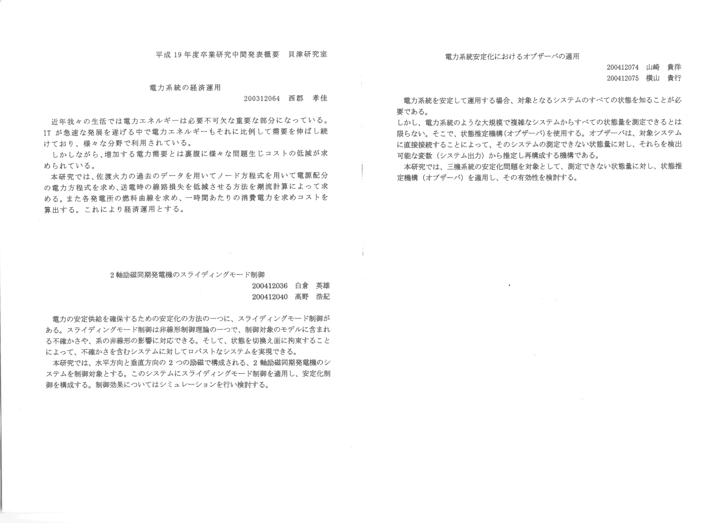 情報電子工学科 2007 年度 卒業研究中間発表会