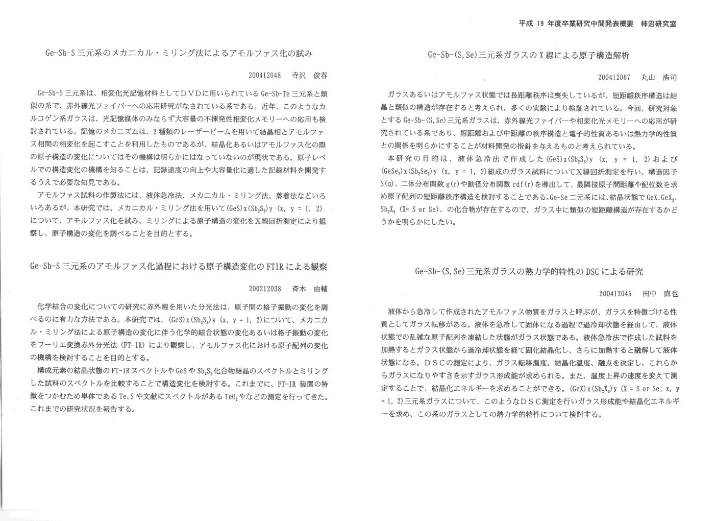 Ge-Sb-S 三元系のメカニカル・ミリング法によるアモルファス化の試み