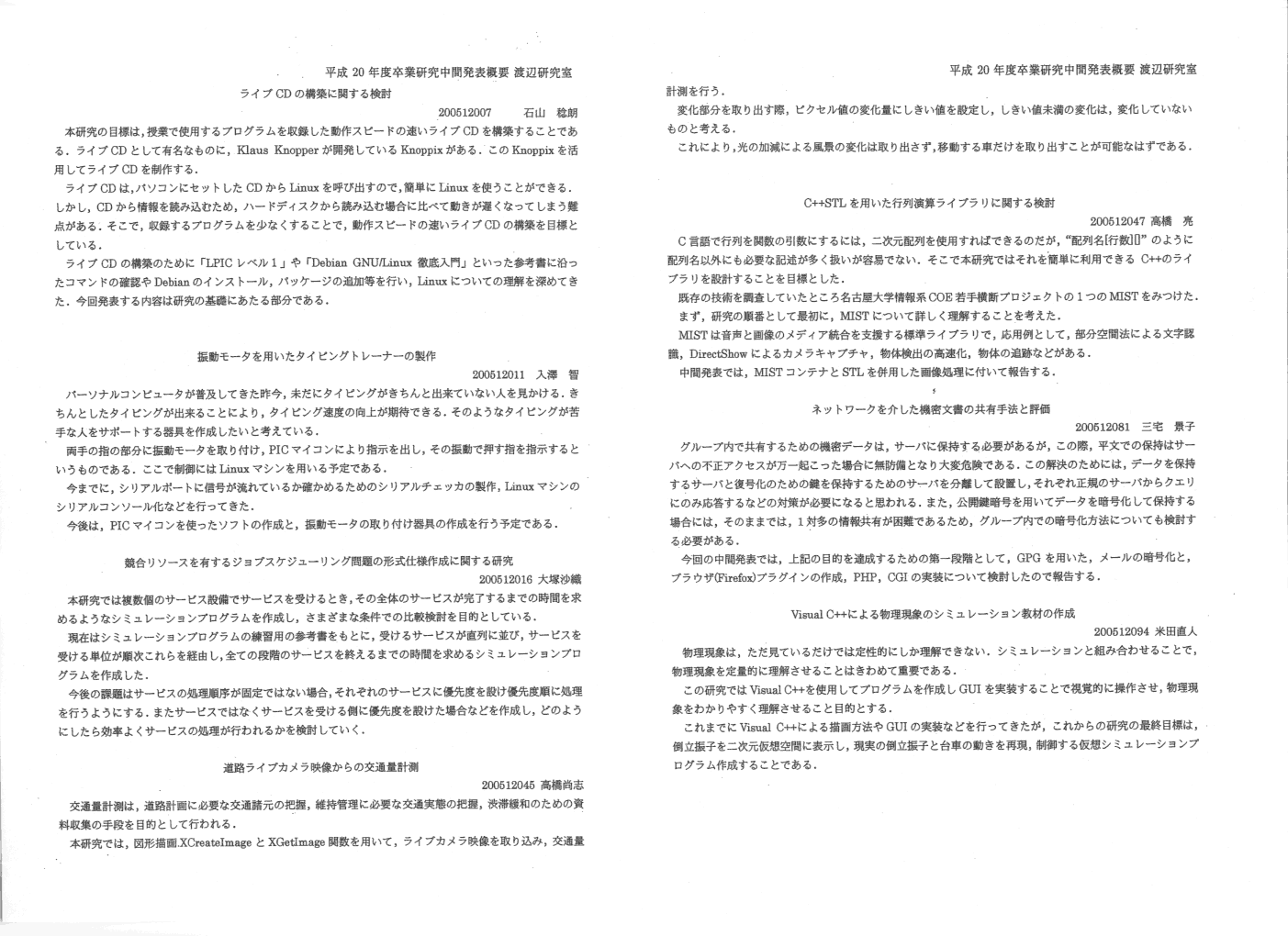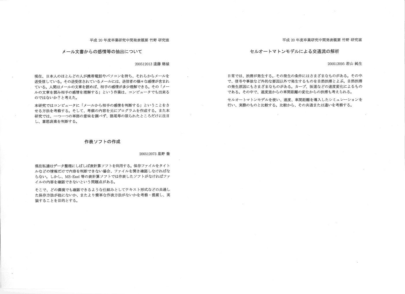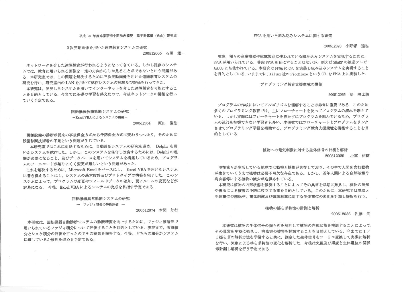 情報電子工学科 2008 年度 卒業研究中間発表会