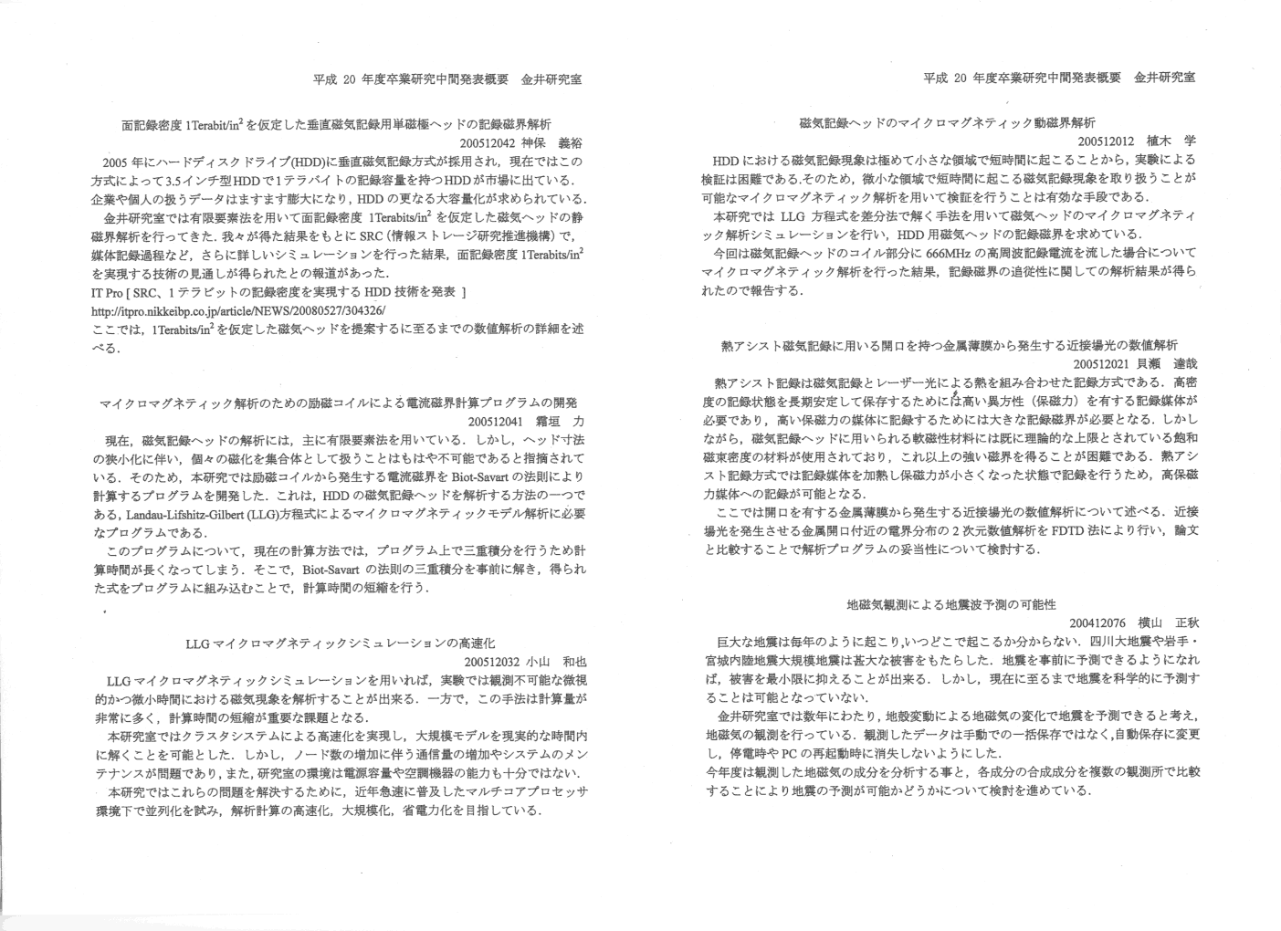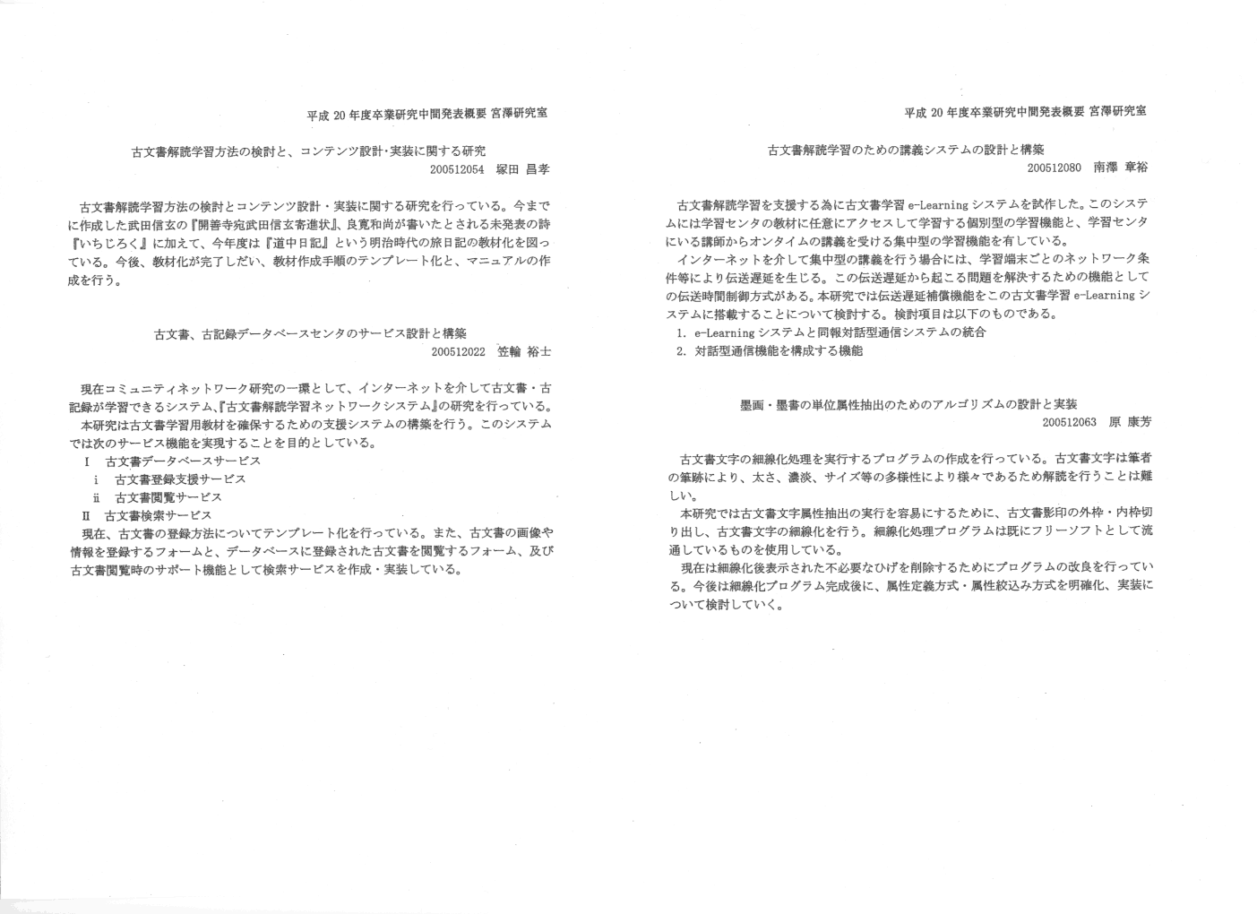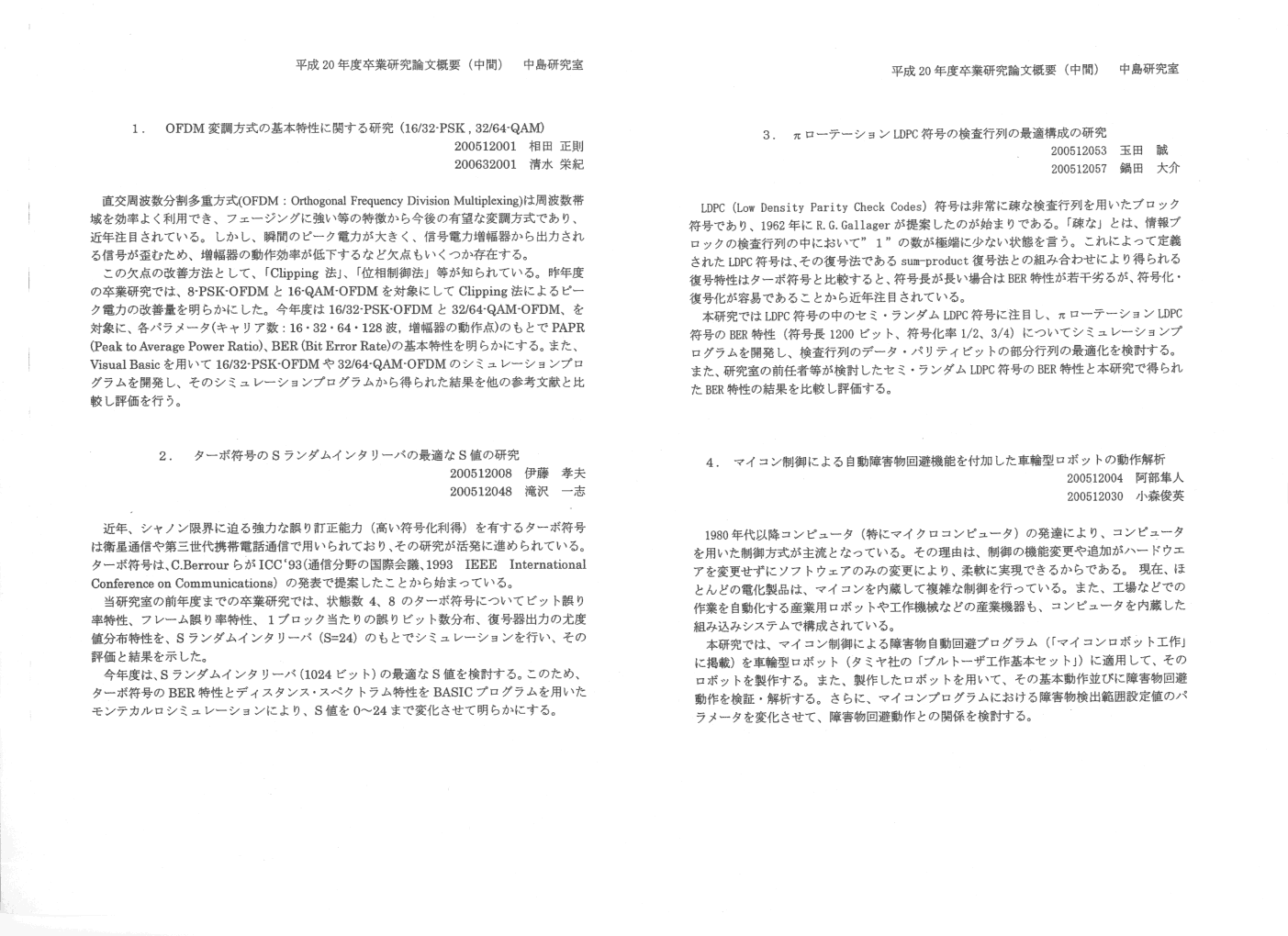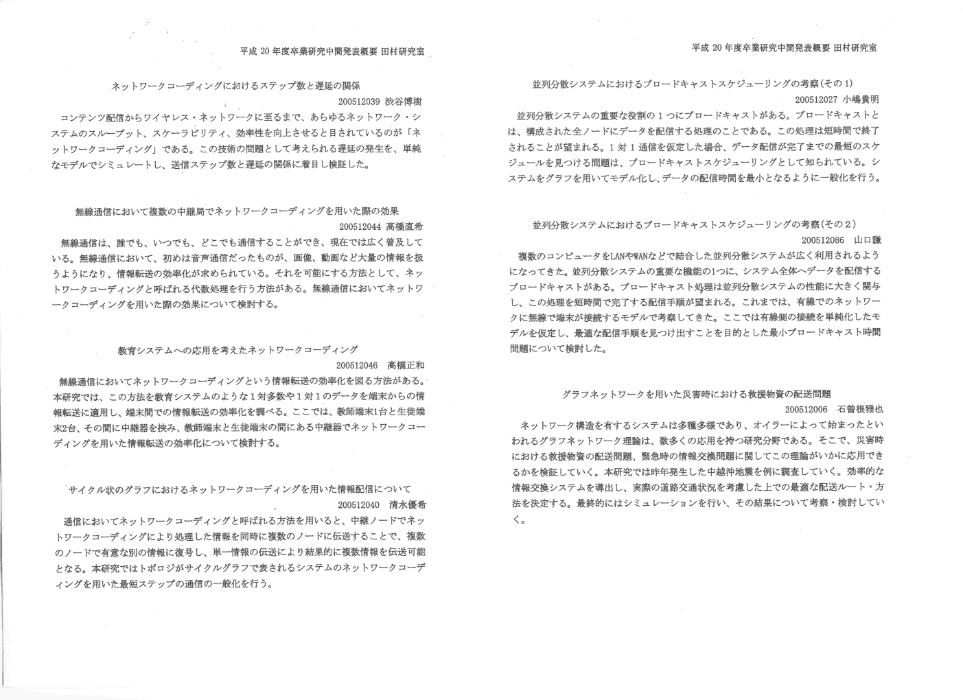 情報電子工学科 2008 年度 卒業研究中間発表会