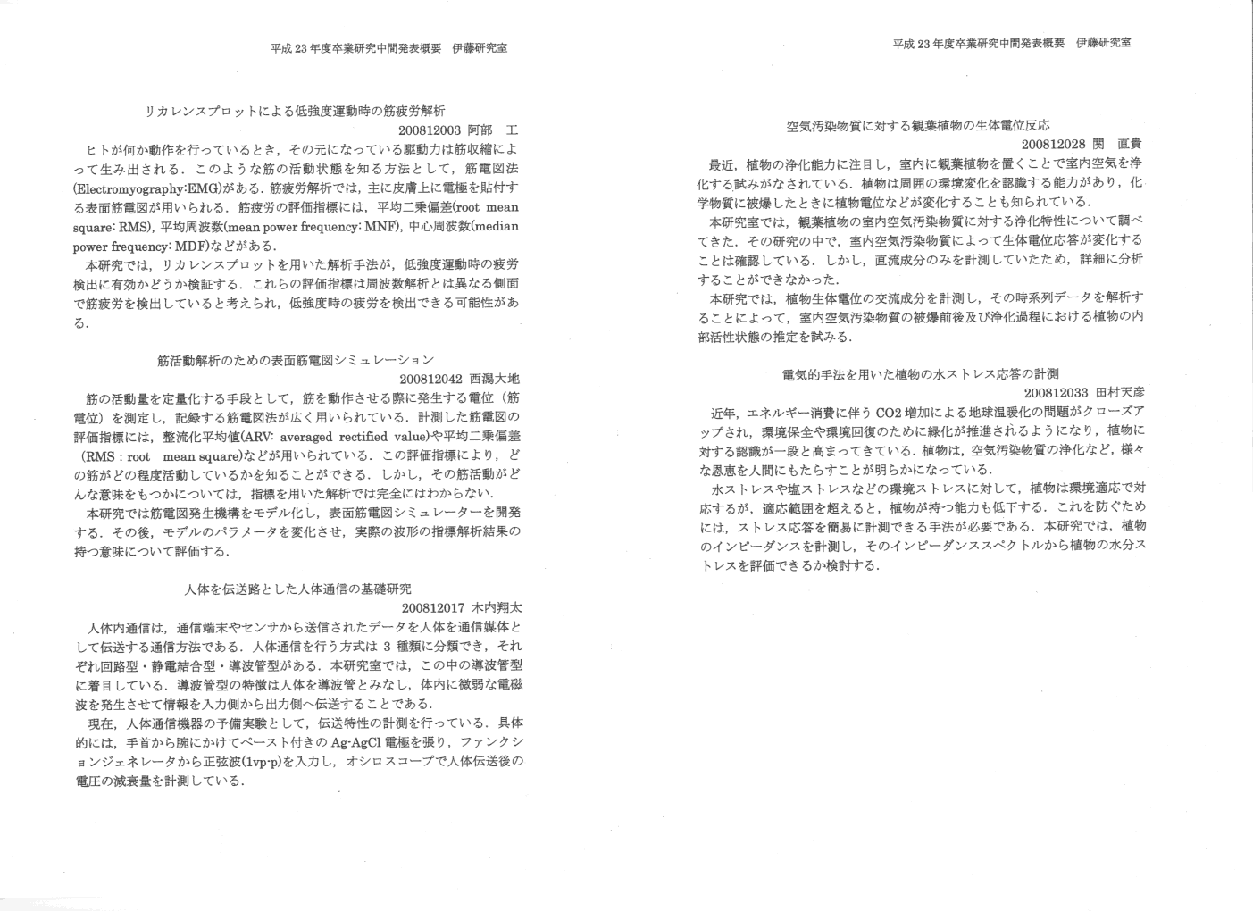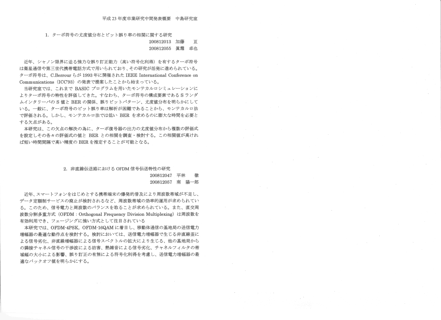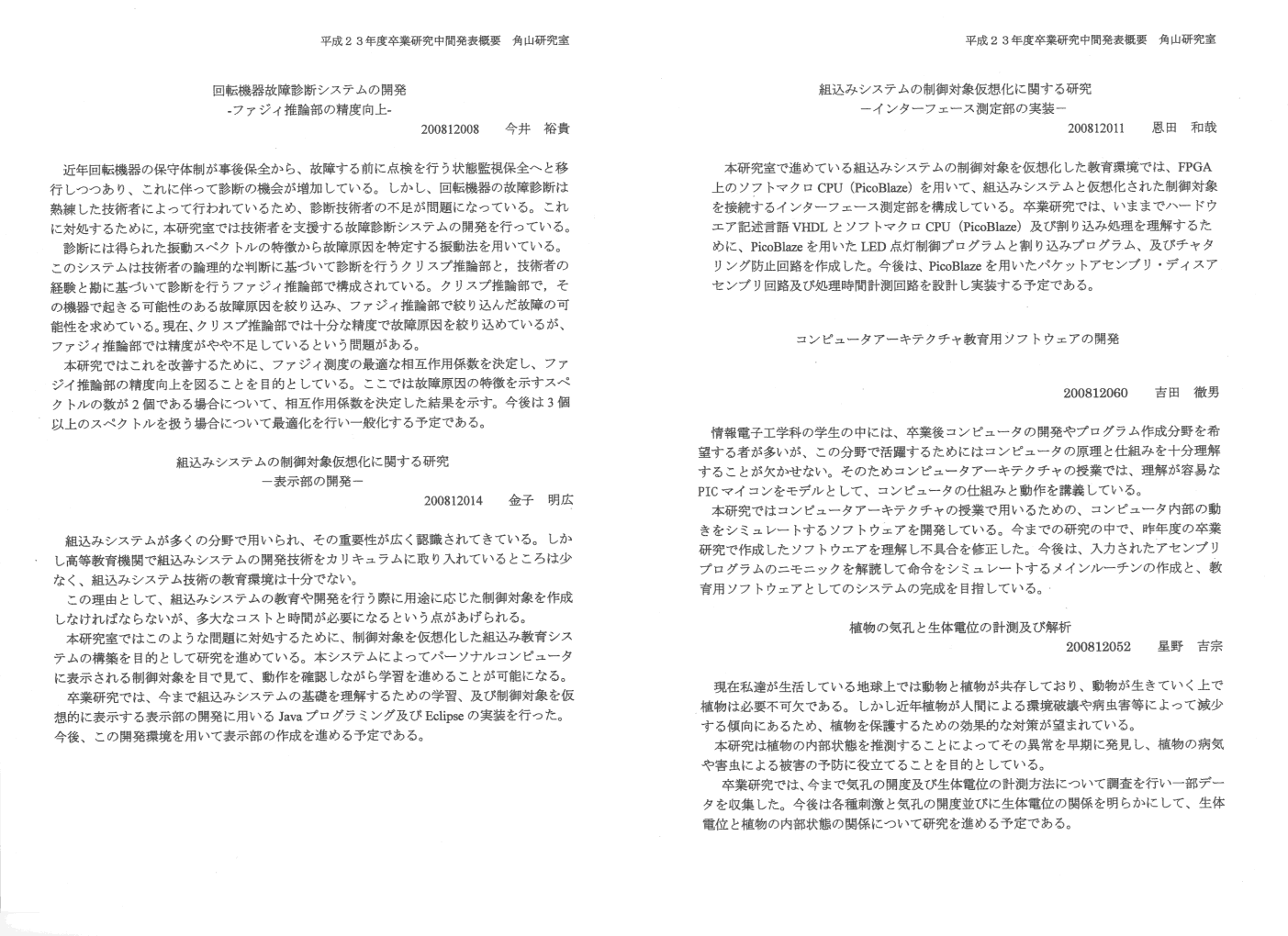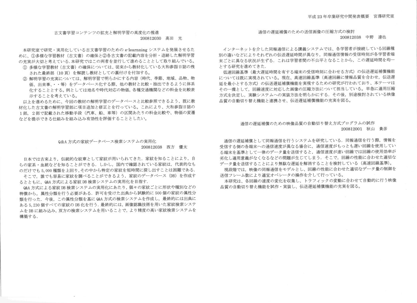 情報電子工学科 2011 年度 卒業研究中間発表会