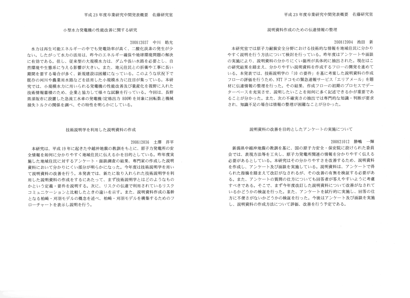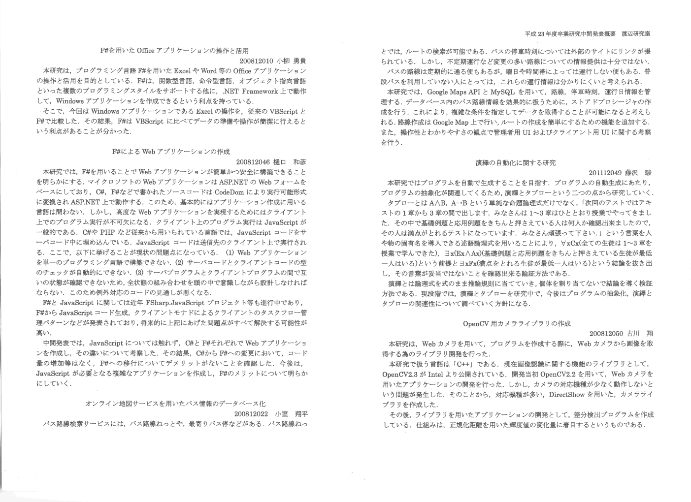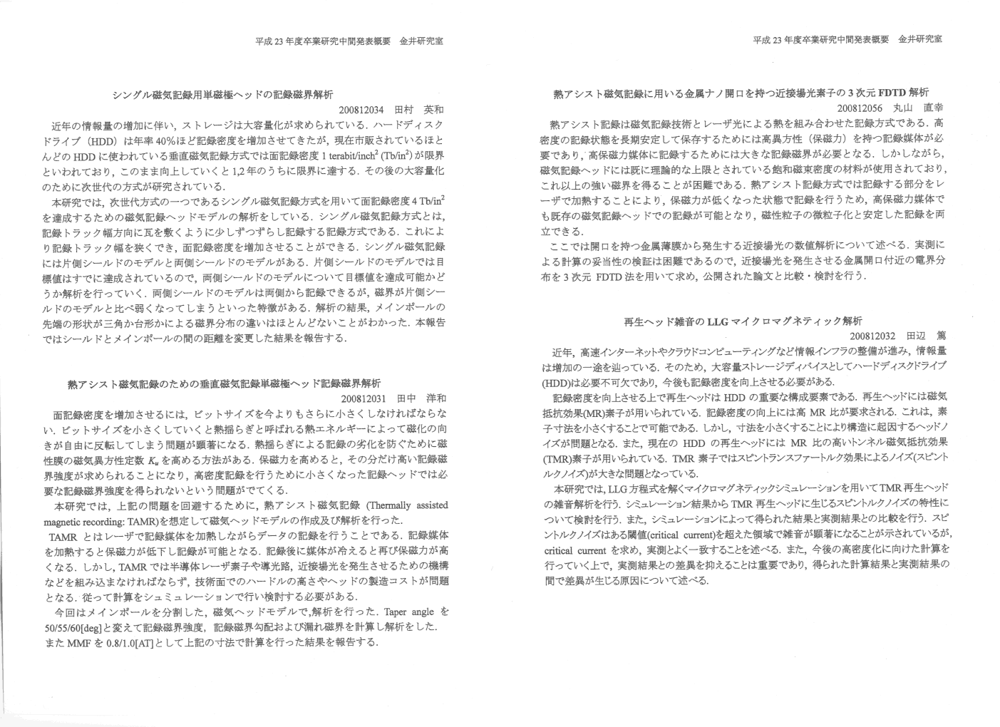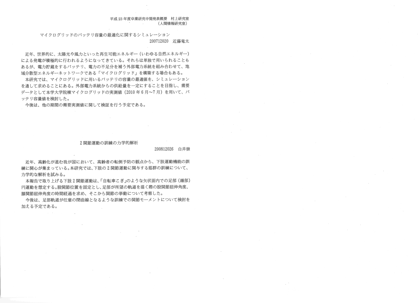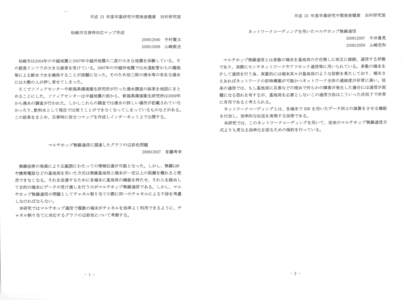 情報電子工学科 2011 年度 卒業研究中間発表会