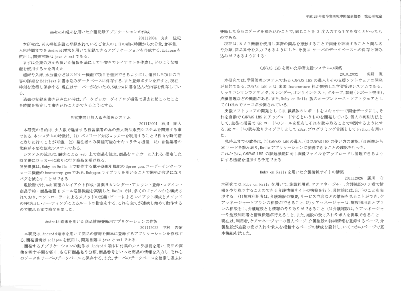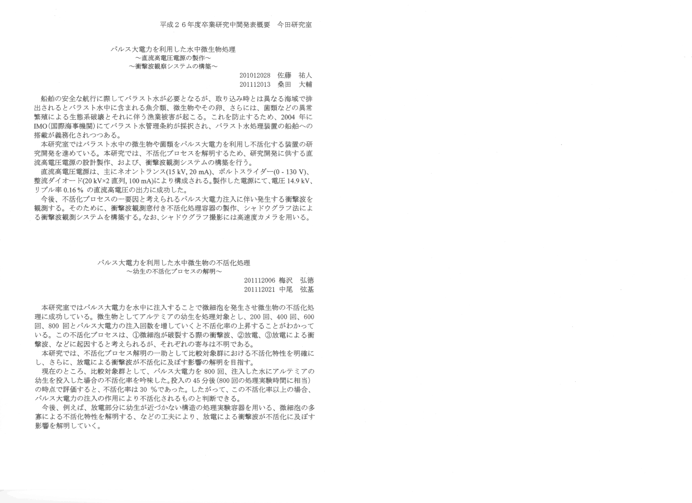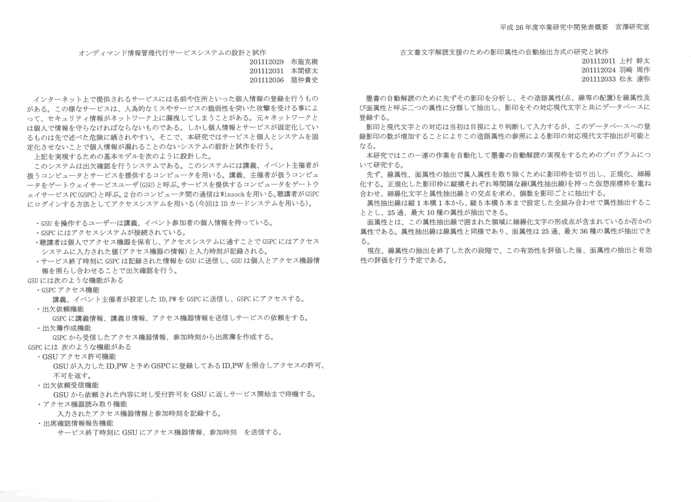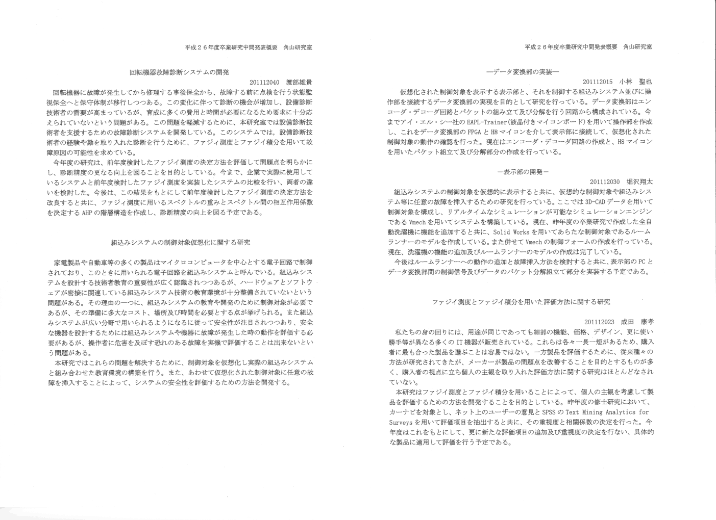 情報電子工学科 2014 年度 卒業研究中間発表会