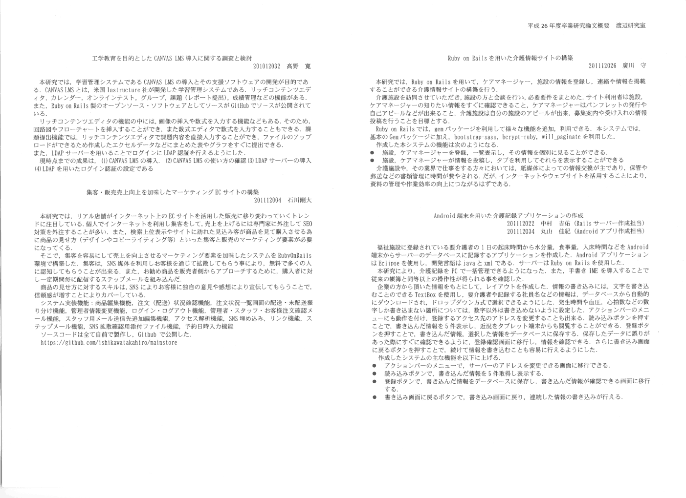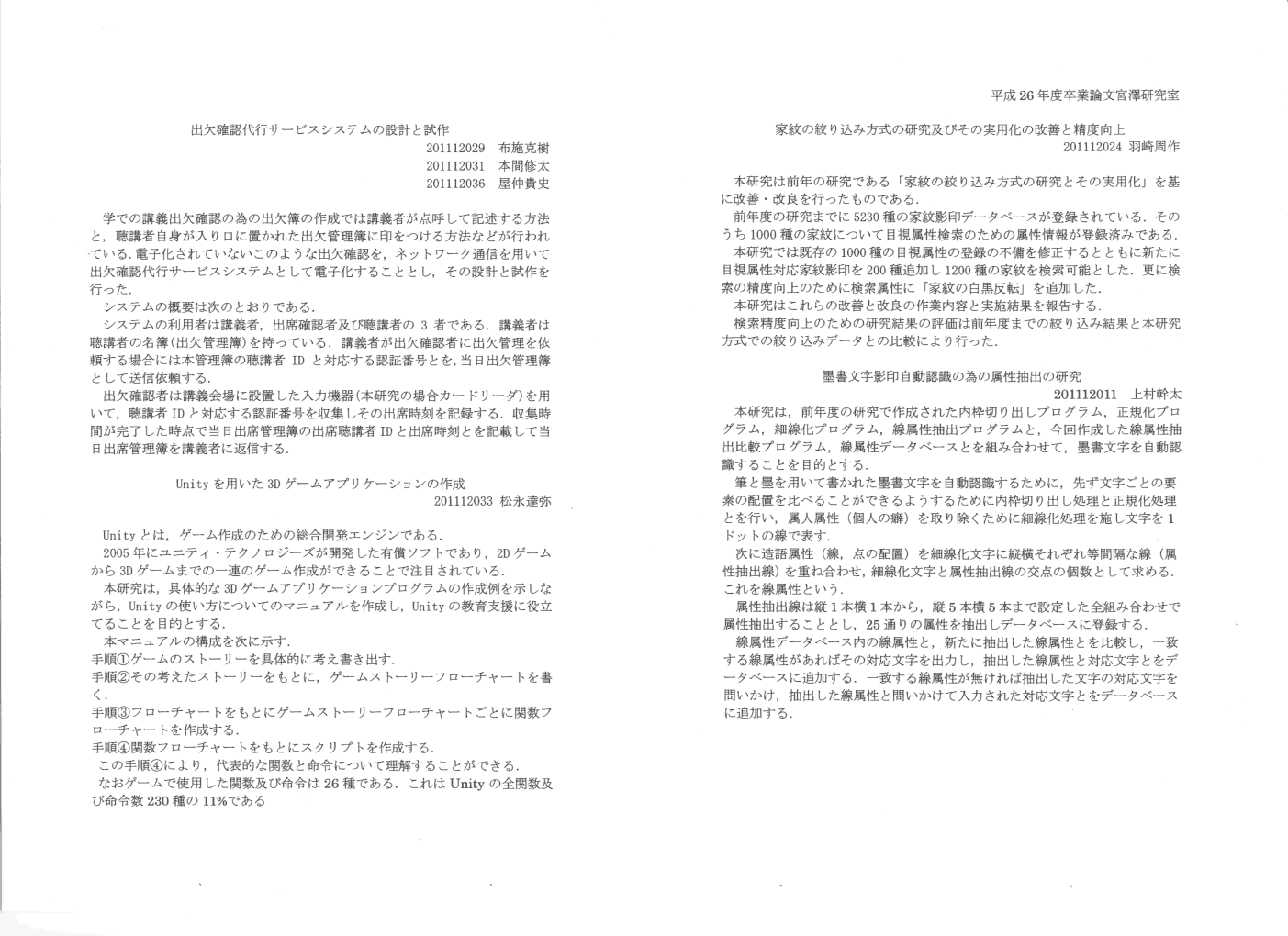 ここに、02/10 2015 に行われる、2014 年度の情報電子工学科