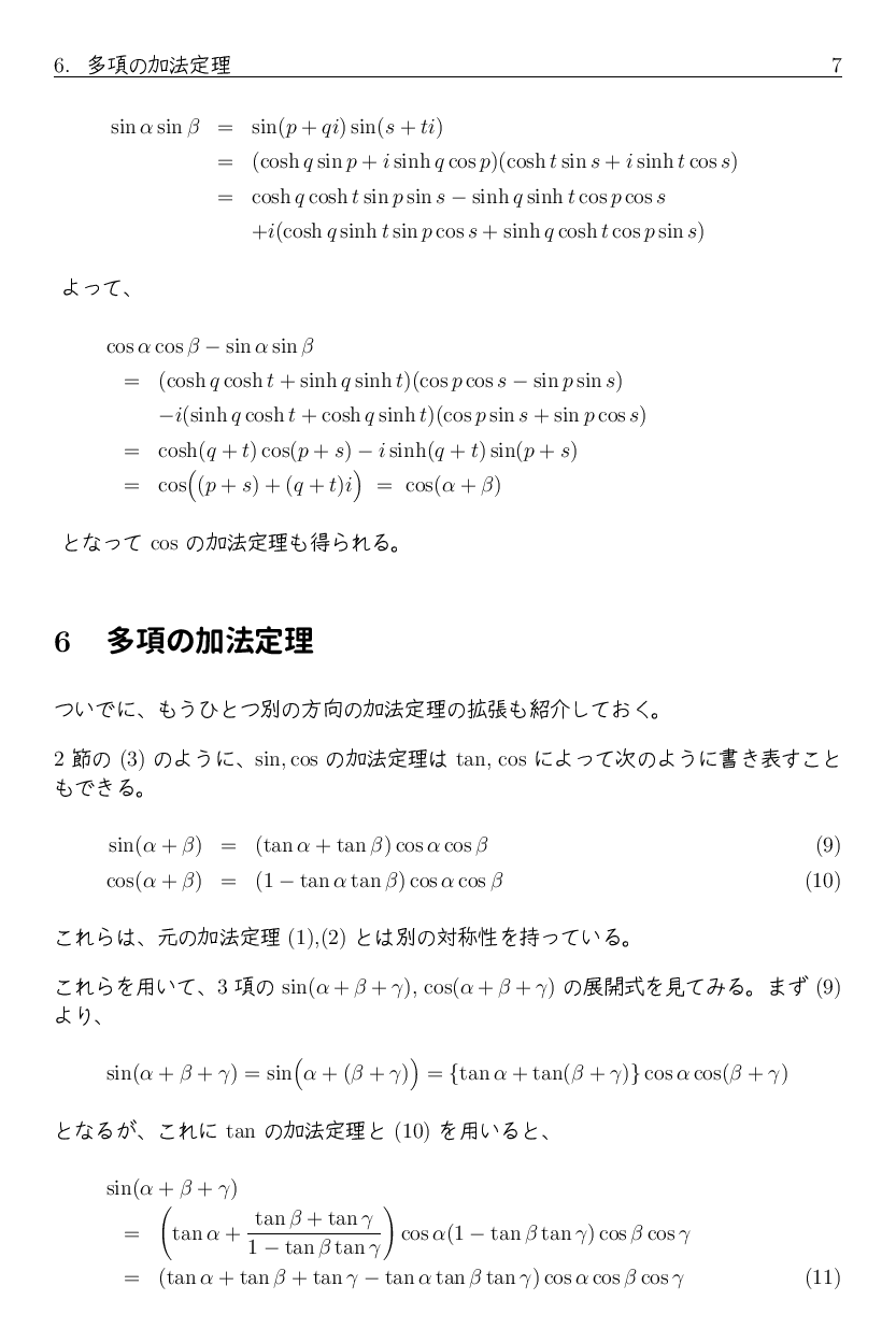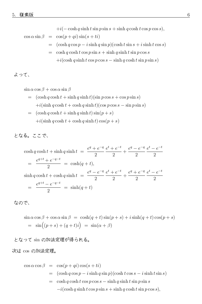 ところで、上の文書では関数方程式の話を余談として書きましたが、 それとはちょっと別の話になりますが、 直接加法定理に関係する余談を少し追加します。