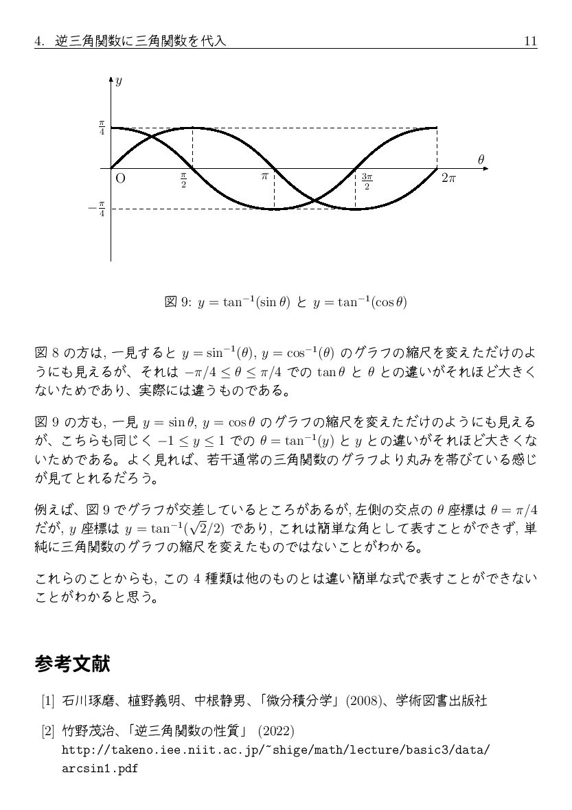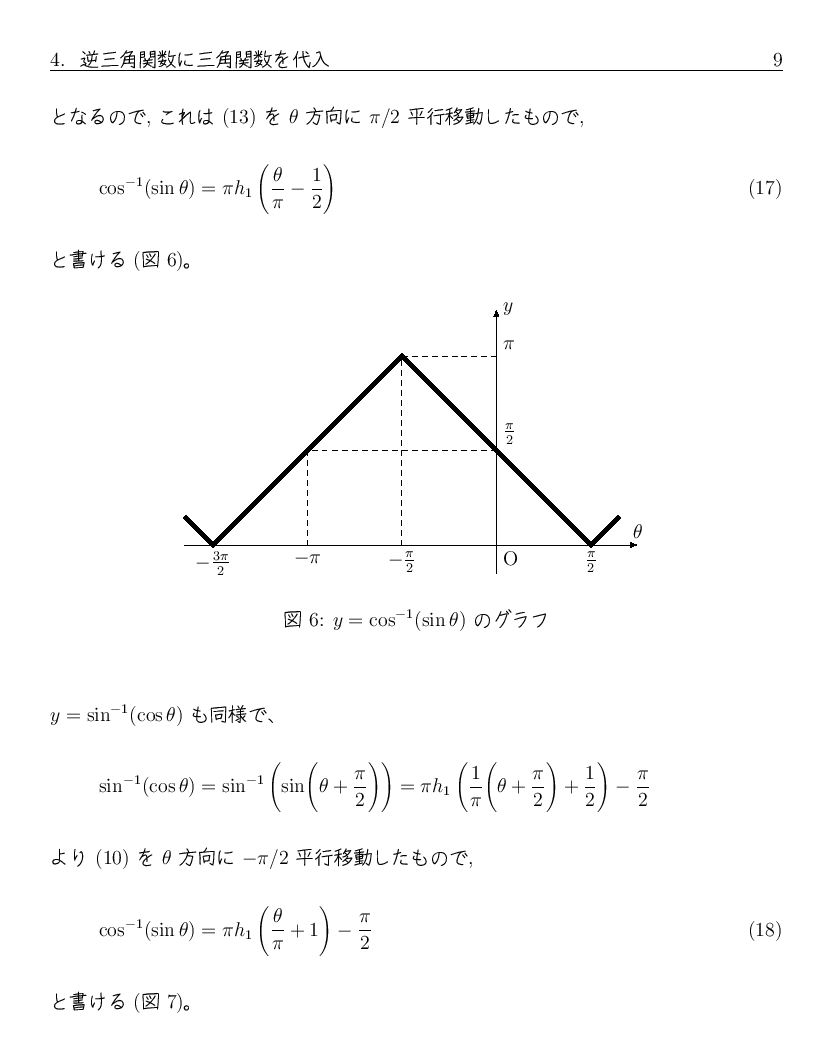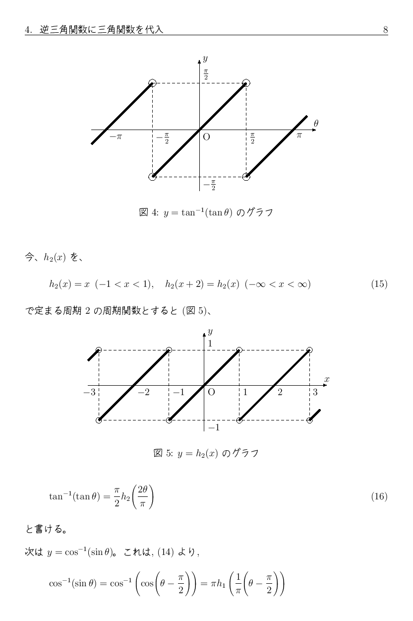 「逆三角関数の性質」 に、 三角関数と逆三角関数の合成関数に関する性質を追加します。