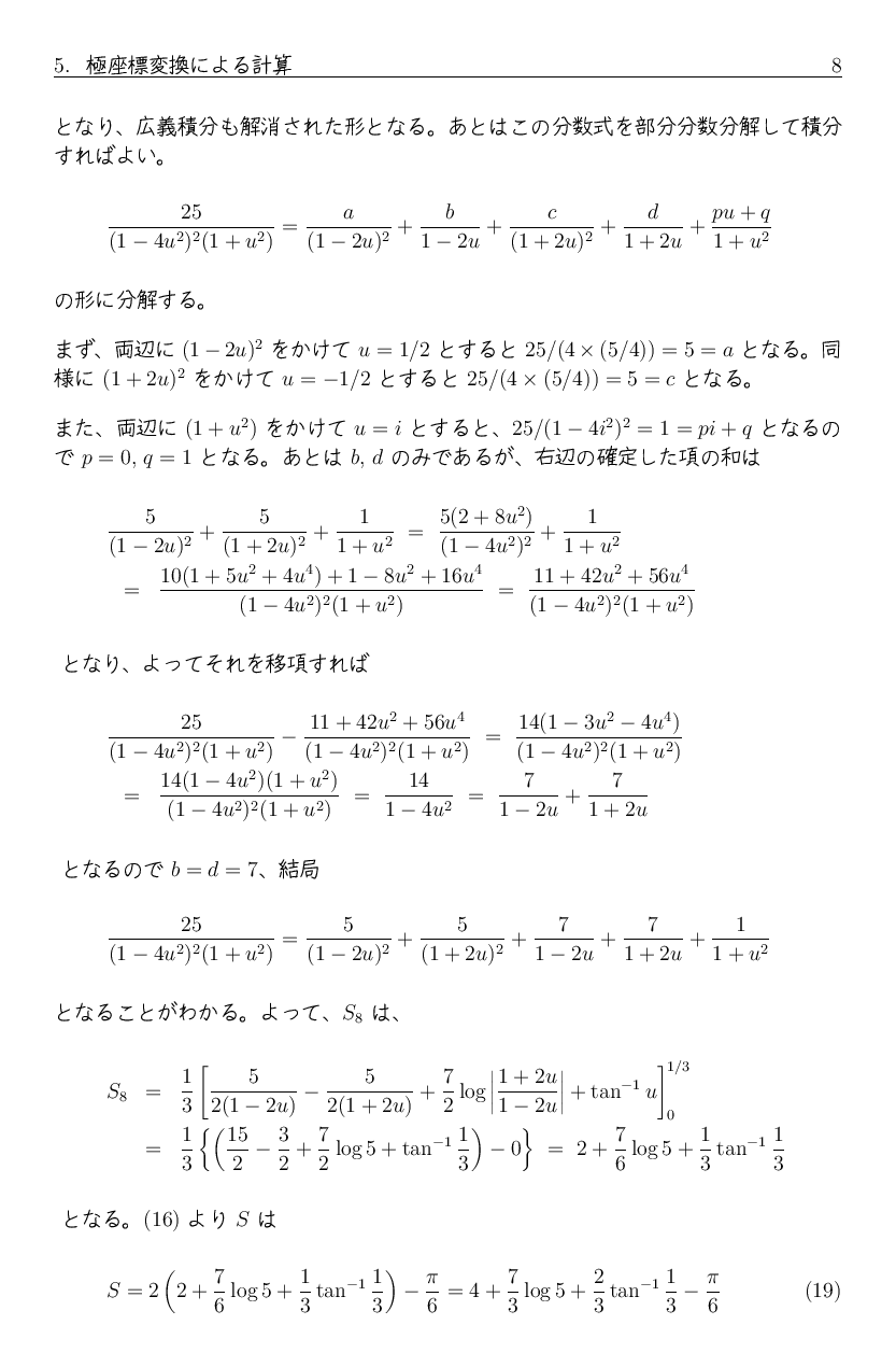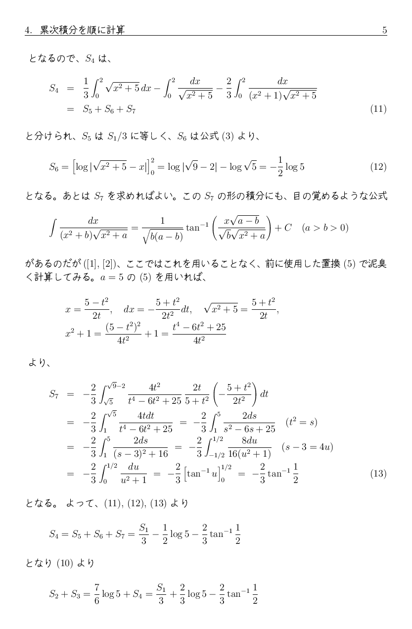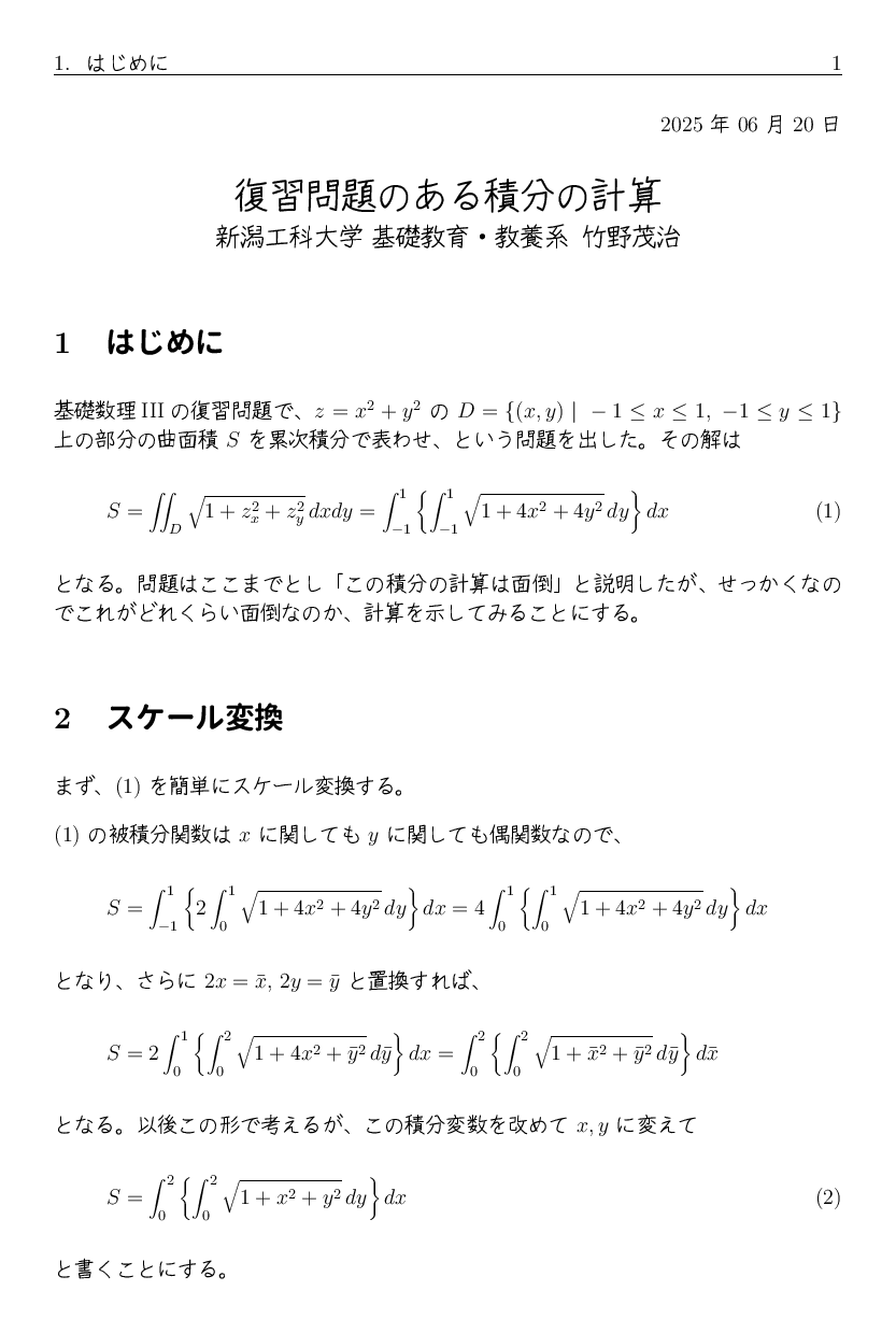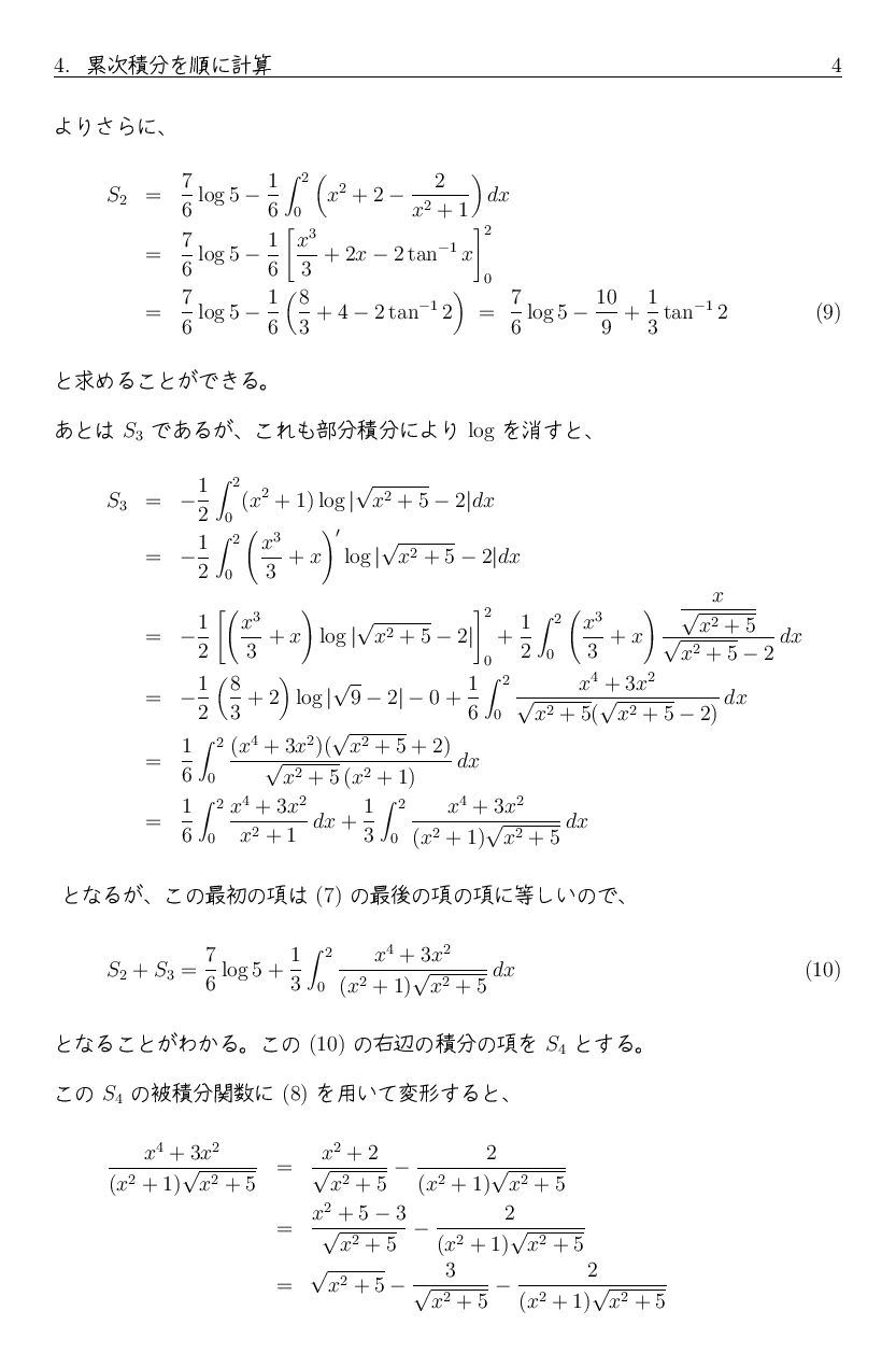 基礎数理IIIの復習問題で、\(z=x^2+y^2\) の [-1,1]×[-1,1] 上の部分の曲面積を累次積分で表わせ、という問題を出しましたが、 「実際の積分の計算は面倒」と説明しました。 せっかくなのでこれがどれくらい面倒なのか、 まとめてみましたのでここに置きます。