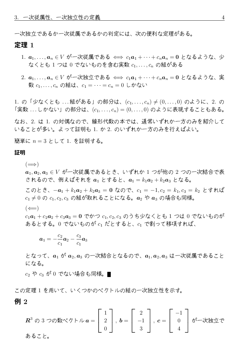 「一次独立」「一次従属」という用語は、 元はベクトルの集まりに対するものですが、 工学では関数の集まりに対しても用いられ、 線形微分方程式の理論などで目にすることが多いです。