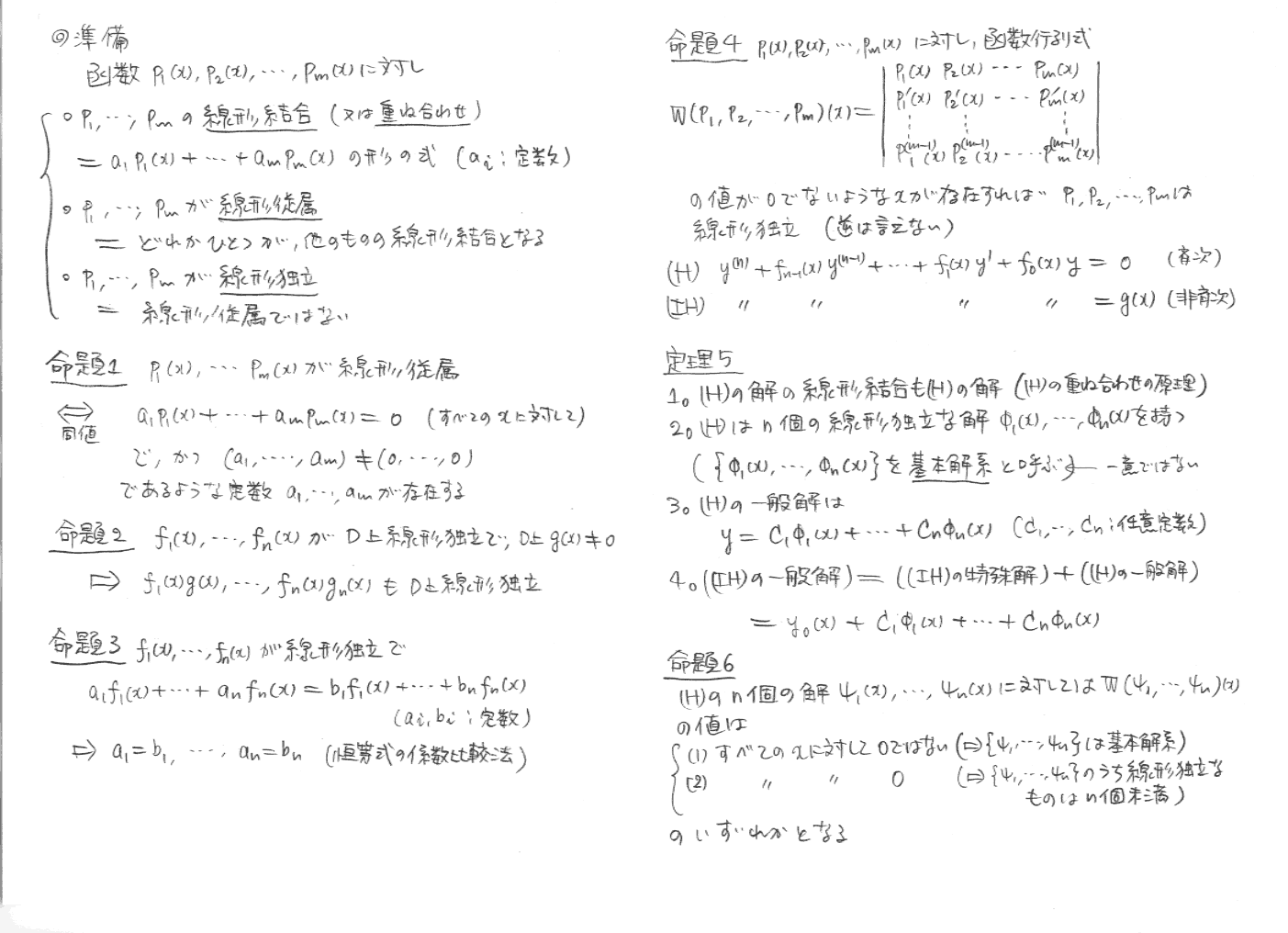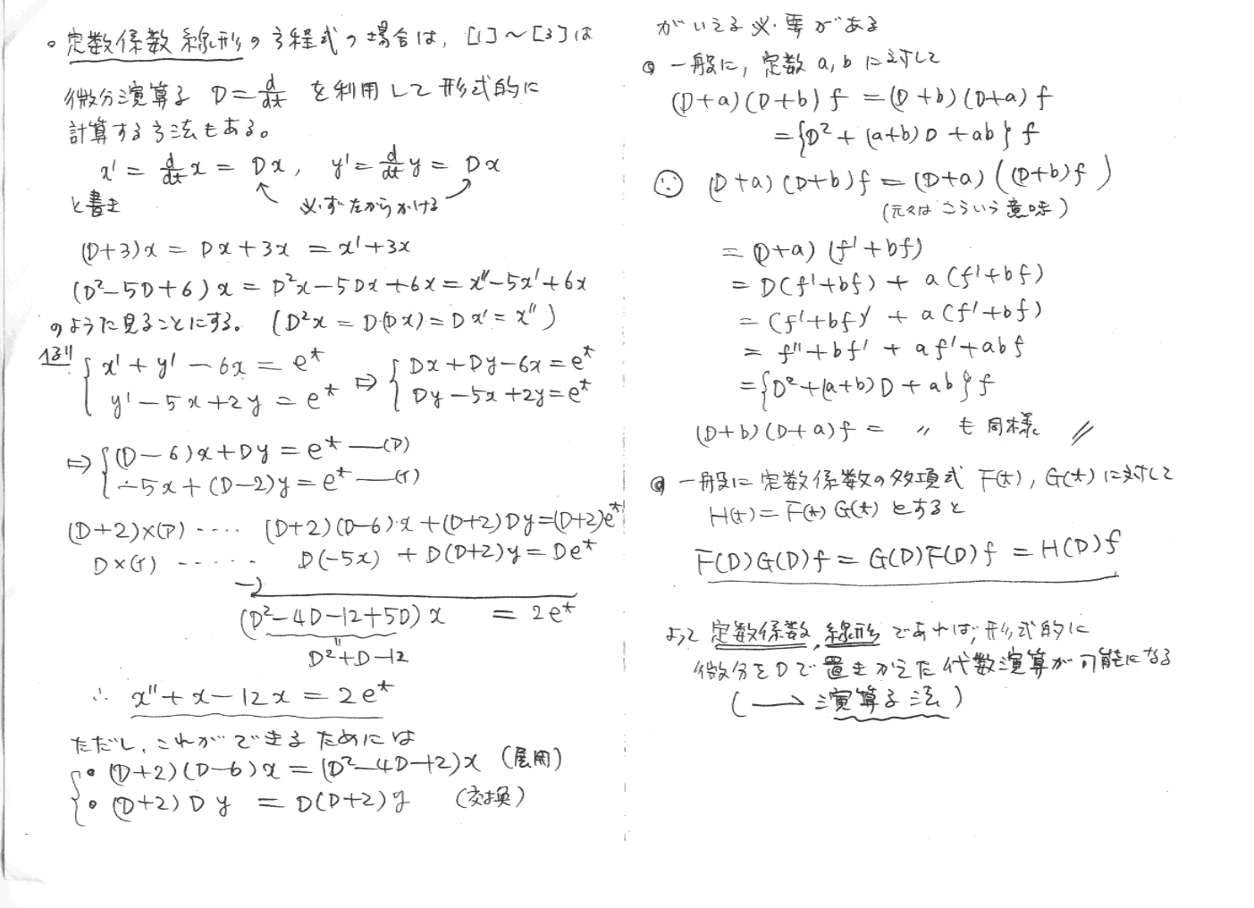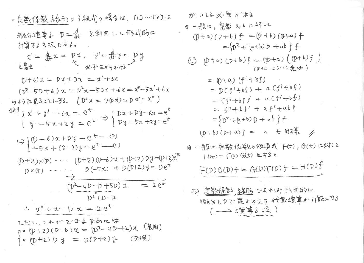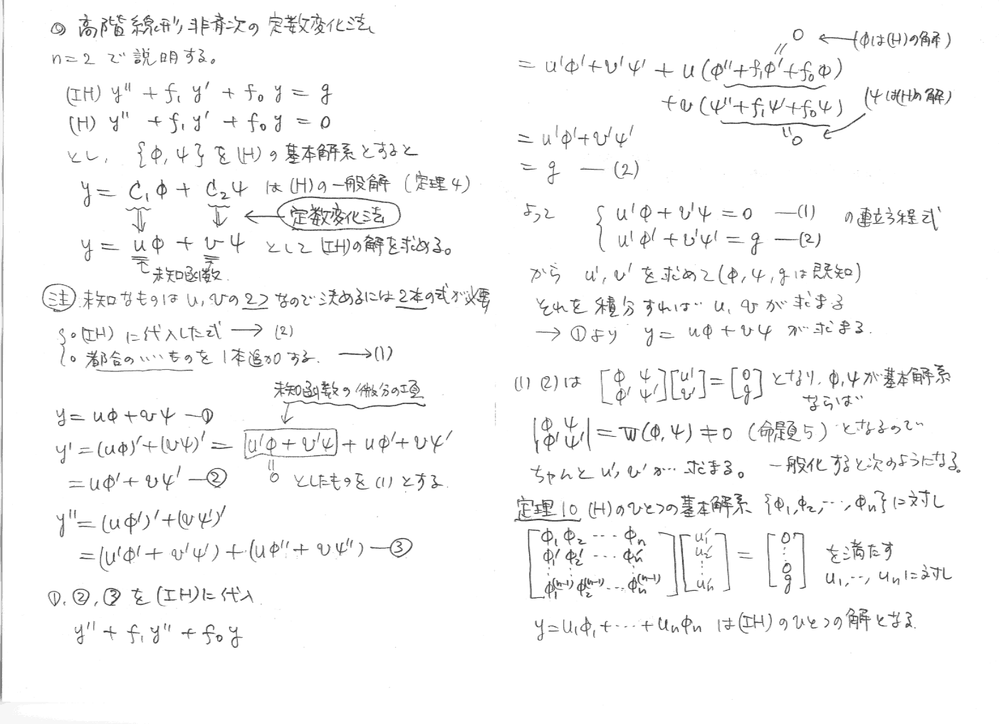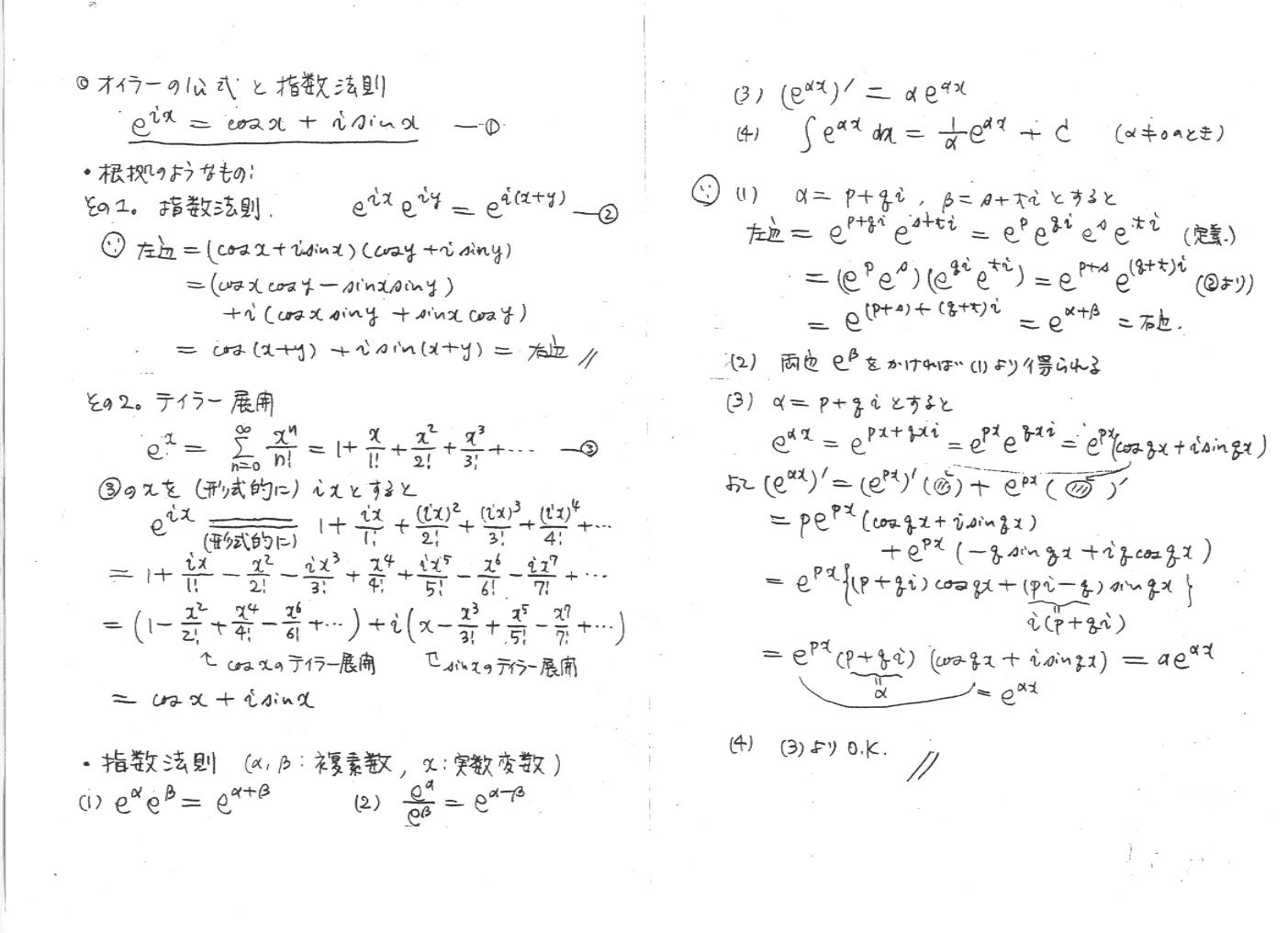 講義中に、説明が長くなるもの、煩雑な証明、あるいは補足などについては 例年プリントで配布していますが、 それを休んだ人の自習用に公開することにしました。 手書きなので多少見にくいですが、画像ファイルと PDF ファイルにして ここに置きます。